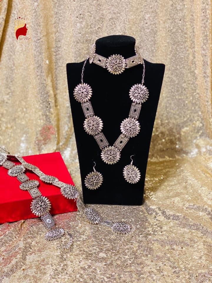 اكسسوار فضي حزام مع سلس واسواره واخراص