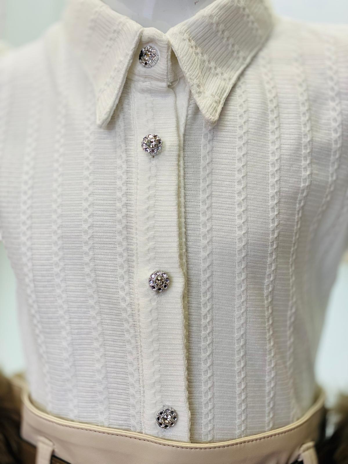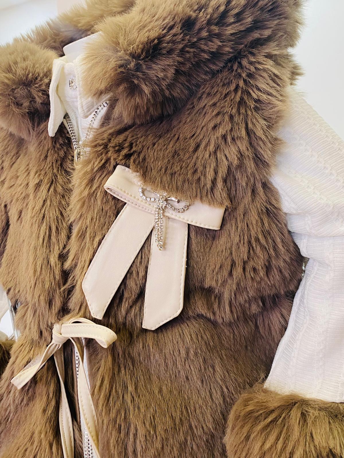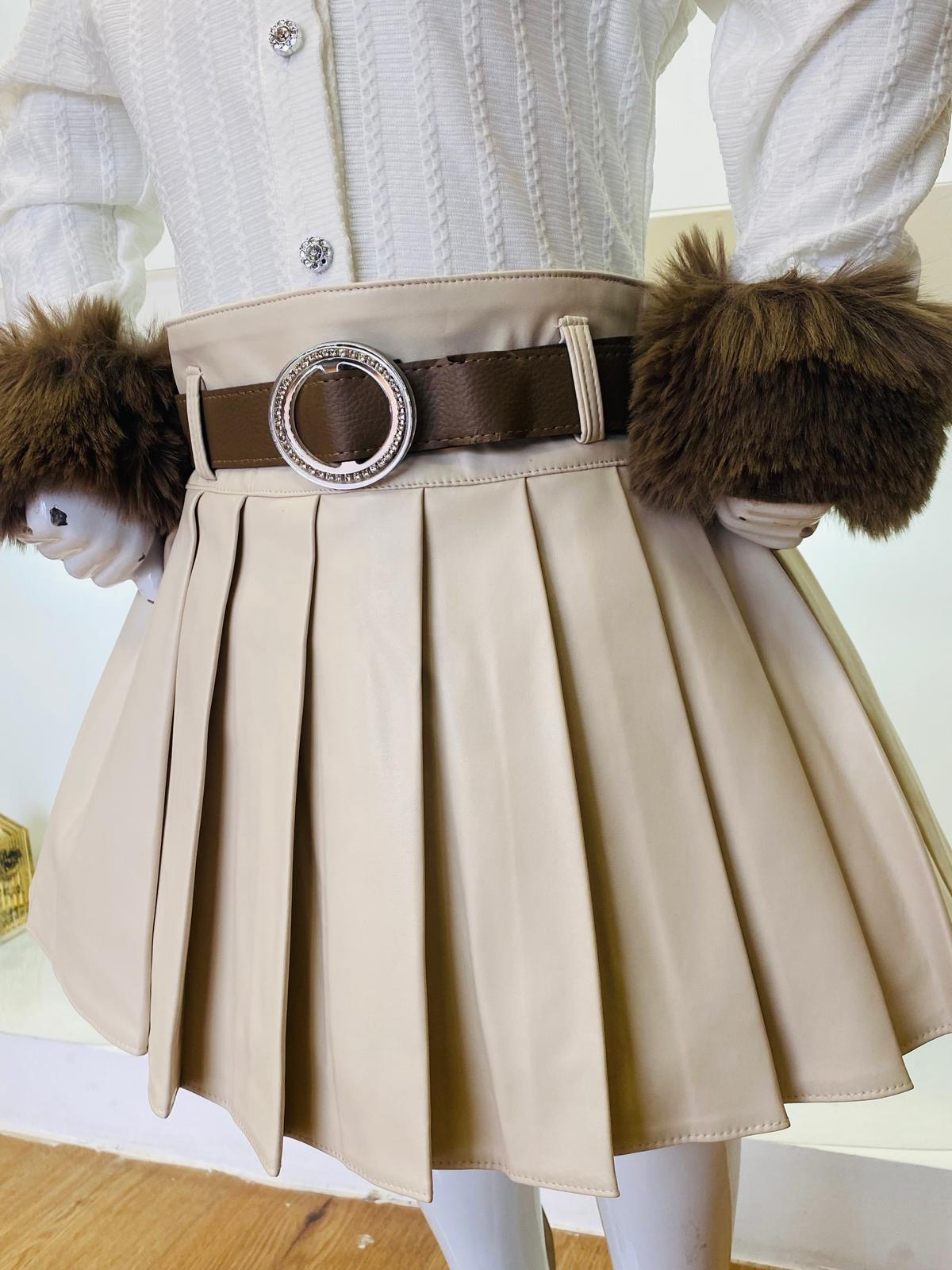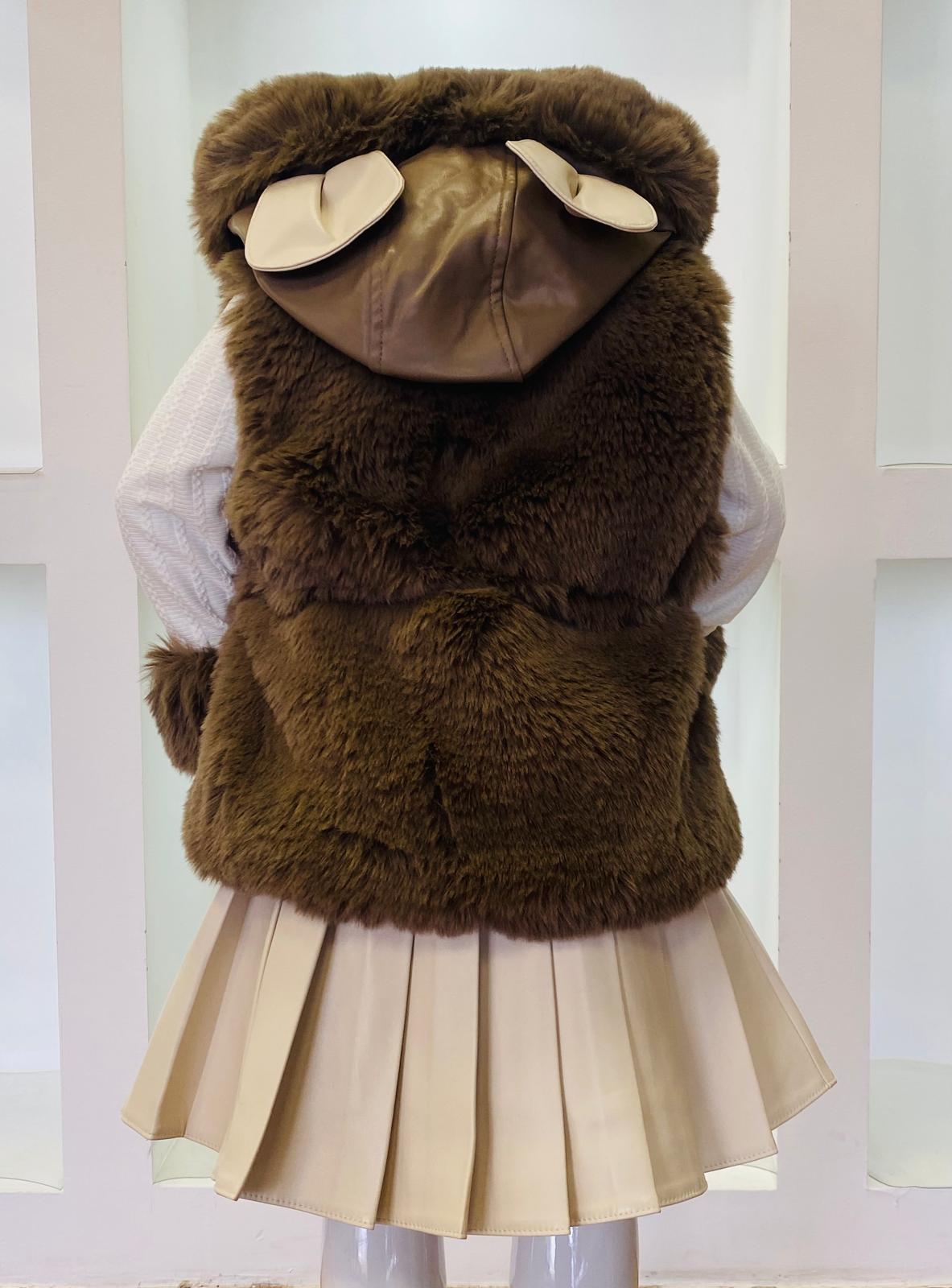 سترة فرو بدون اكمام مع تنورة وبلوزة